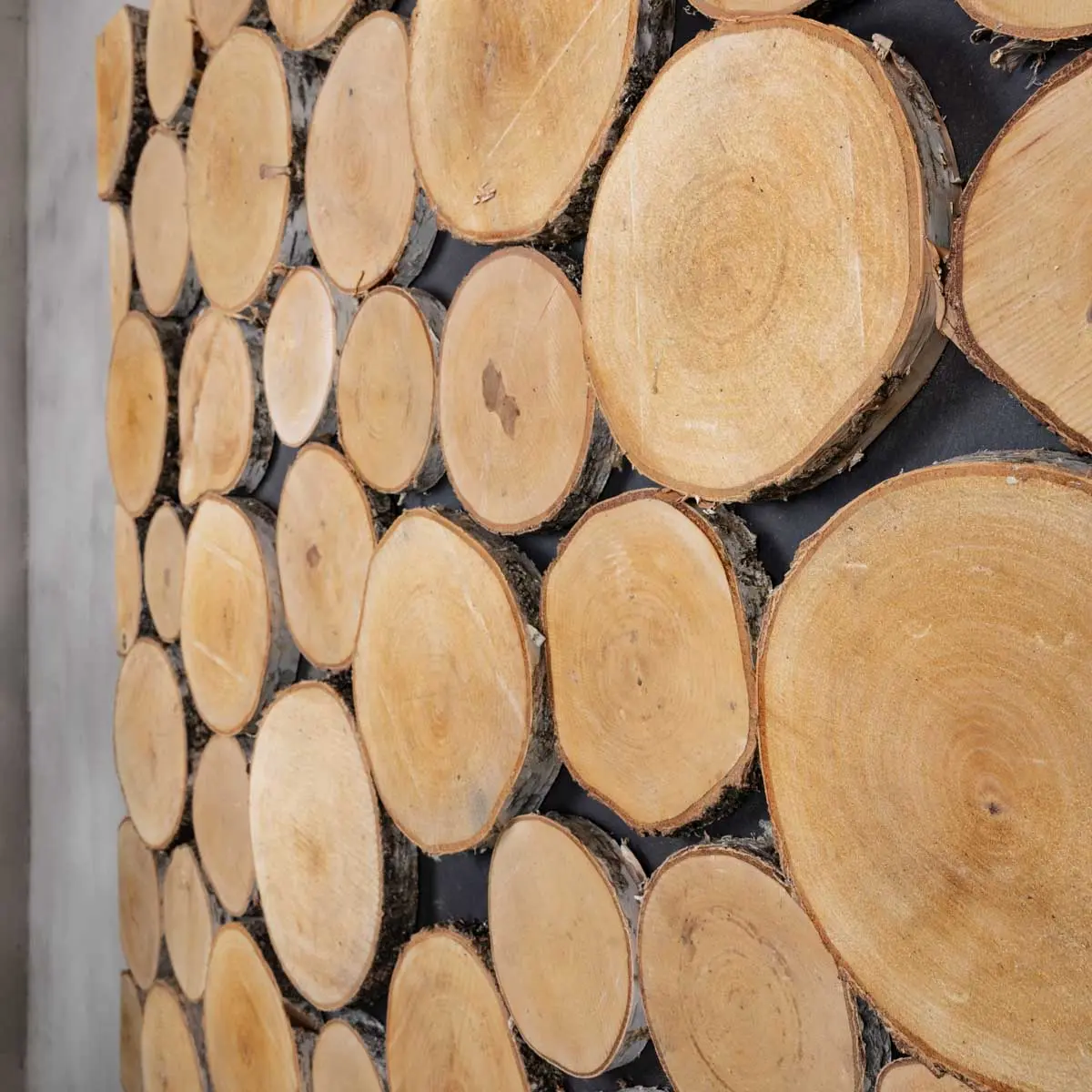 De boomstam wanddecoratie Gus brengt warmte en natuur in huis met zijn berkenschijven van 10 tot 25 cm. De variatie in formaat en nerven geeft het paneel een levendig karakter en zorgt voor een speels patroon dat nooit verveelt.