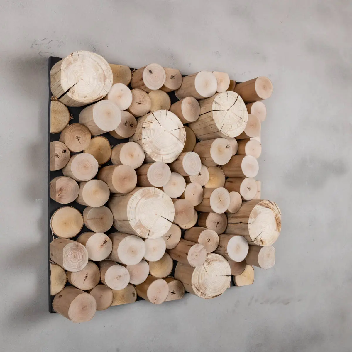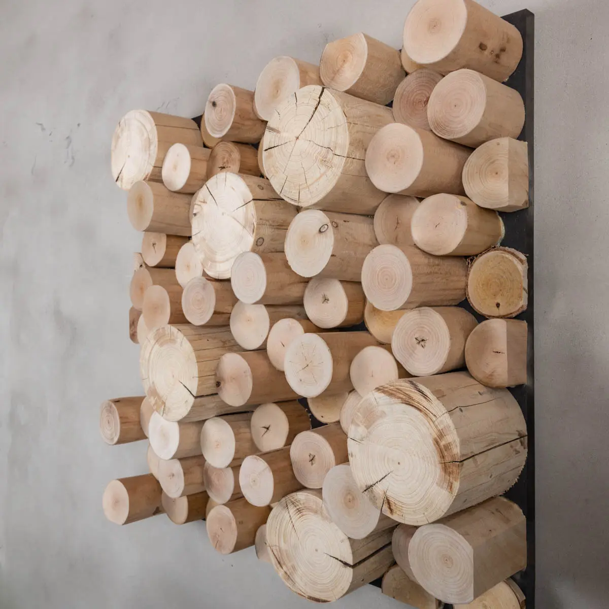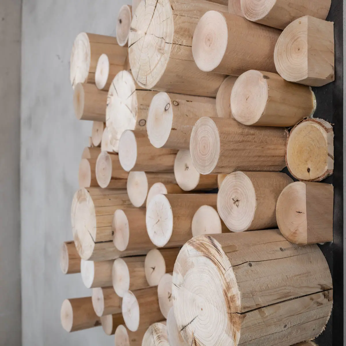 Breng natuurlijke warmte in huis met de boomstam wanddecoratie Kai, gemaakt van echte ontschorste berkenstammetjes in verschillende lengtes van 6 tot 12 cm. Elk paneel wordt met de hand samengesteld, waardoor een speels en organisch 3d reliëf ontstaat dat direct de aandacht trekt.