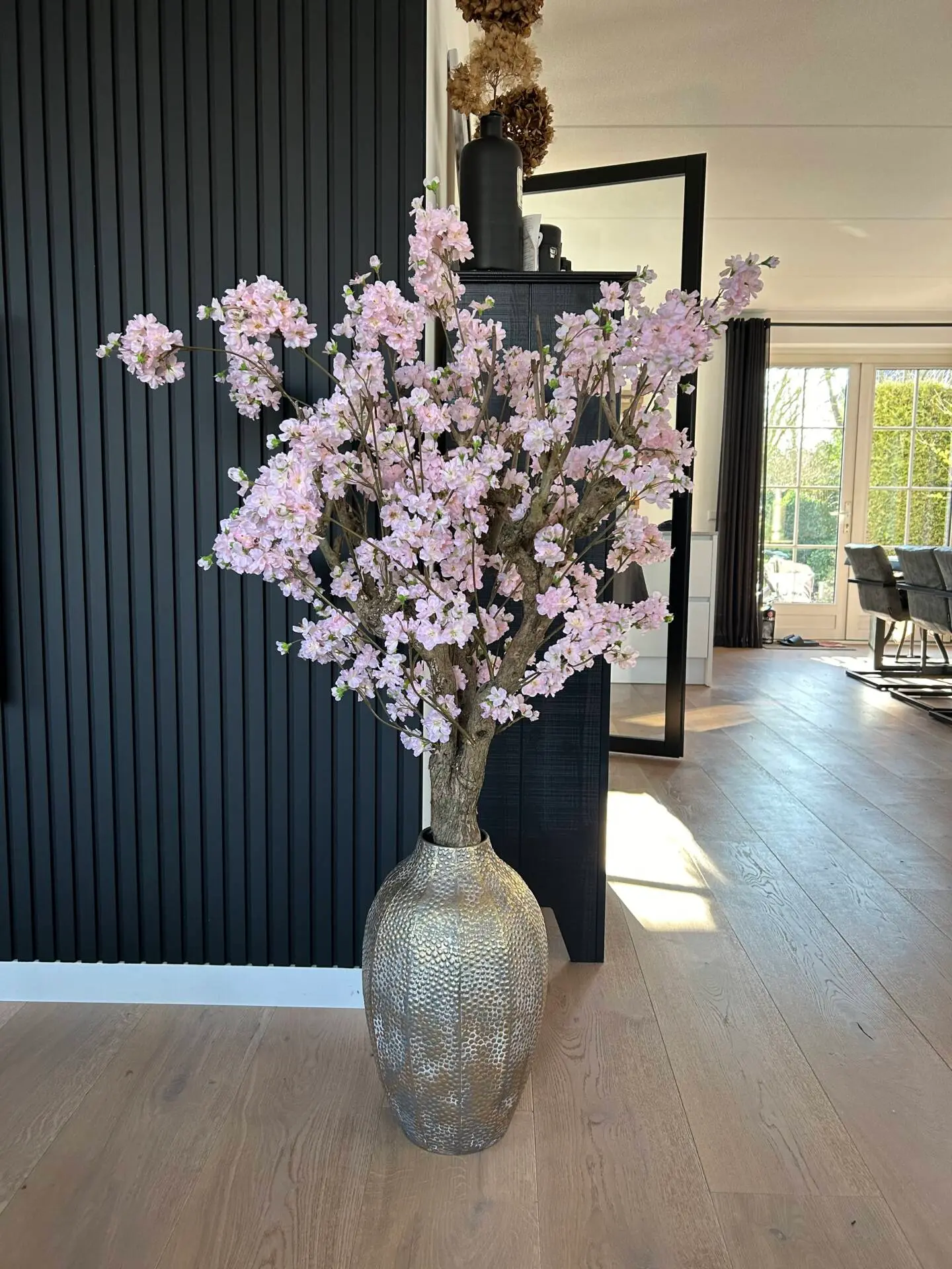 De bloesemboom wordt standaard zonder pot geleverd en de takken zijn als set aan elkaar bevestigd, zodat je hem eenvoudig in een sierpot naar keuze kunt plaatsen. Gebruik bijvoorbeeld zand, steentjes of schors om de boom stevig te verankeren en direct een natuurlijke uitstraling te creëren.