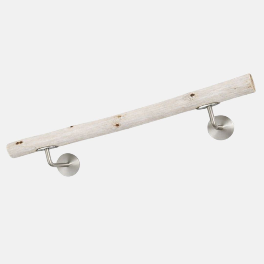 Het Svea handdoekrek combineert de charme van natuurlijk hout met de moderne uitstraling van strakke beugels. De drager is gemaakt van een ontschorste berkenstam, waardoor elk exemplaar uniek is in vorm en nerfstructuur. Het berkenhout is behandeld met een White wash olie, waardoor de houtnerf subtiel zichtbaar blijft terwijl de boomstam een frisse, bijna Scandinavische look krijgt. De stevige beugels die verkrijgbaar zijn in zwart of RVS zorgen voor een solide bevestiging aan de muur en geven een strak, tijdloos contrast met het lichte hout.