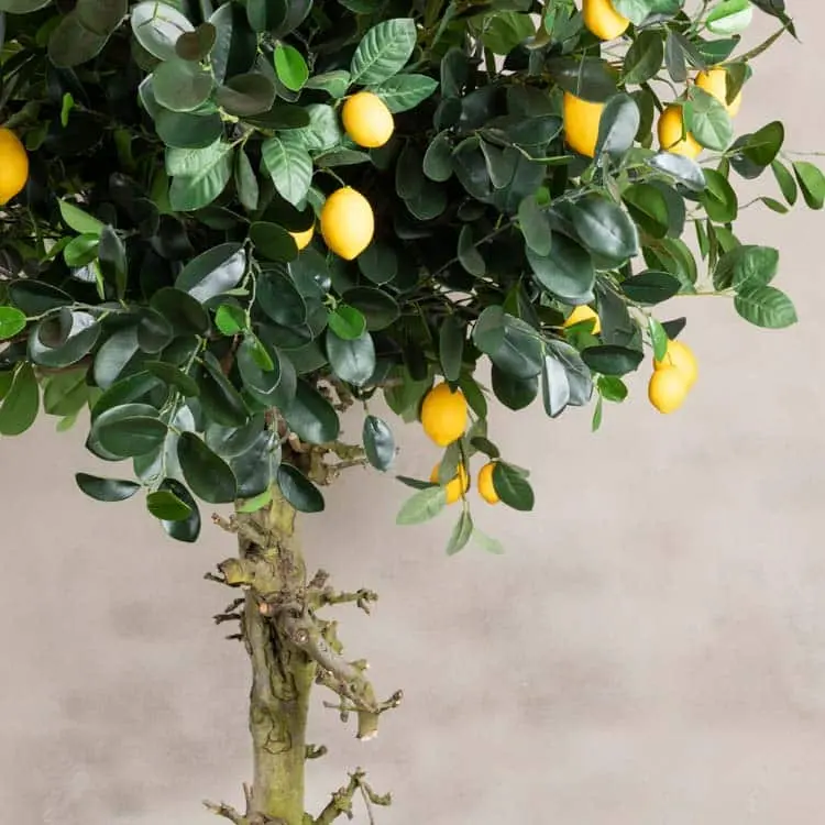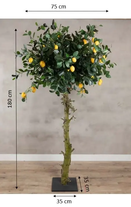 Dankzij zijn hoogte en robuuste uitstraling is deze citroenboom een echte eyecatcher in elk interieur, restaurant of winkel. Hij combineert de charme van zuiderse natuur met het gemak van onderhoudsvrije decoratie. Dankzij de stevige zwarte voet staat de boom stabiel en blijft hij mooi in vorm, zonder onderhoud of verzorging.