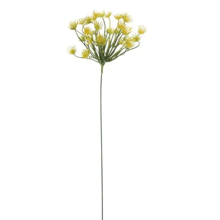 Deze kunst dille in een vrolijke gele tint heeft een lengte van 50 cm en brengt een luchtige en speelse uitstraling in elk bloemstuk. De fijne bloemtrosjes en slanke steel zorgen voor een natuurlijk effect, waardoor de tak perfect te gebruiken is als opvulling of accent in een boeket.