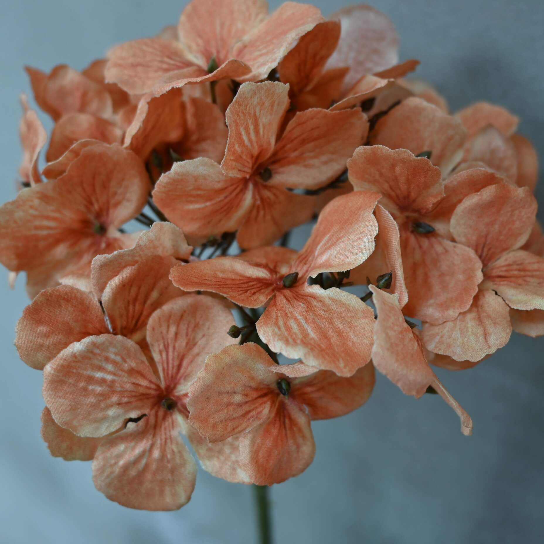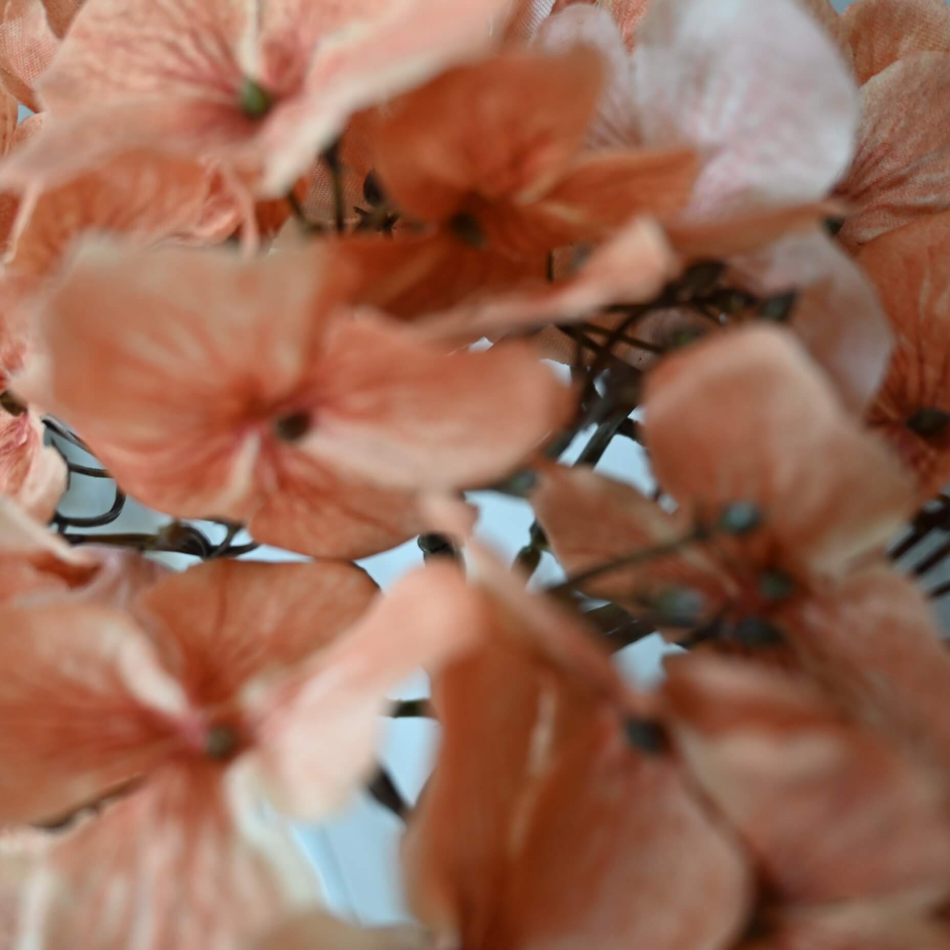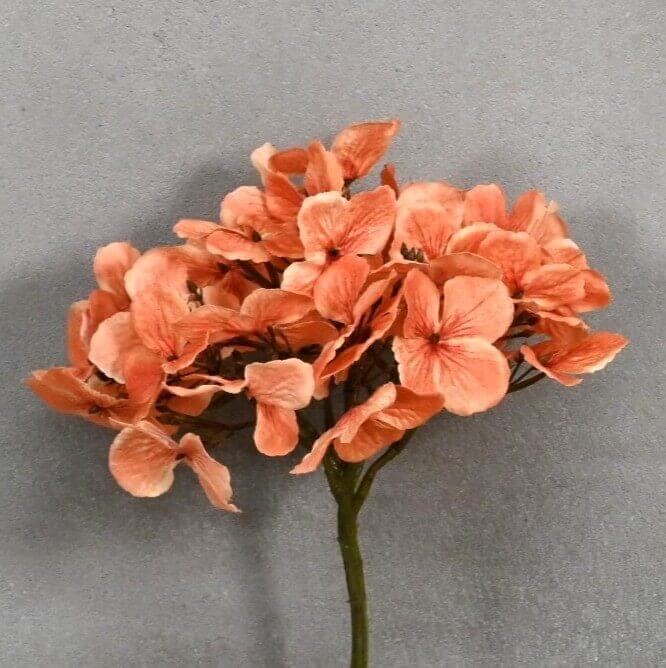 Deze wilde kunst hortensiabloem in een warme oranje kleur voegt een speels en natuurlijk accent toe aan elk interieur. Met zijn volle bloemen en lichte vertakkingen oogt de tak levensecht en stijlvol.
