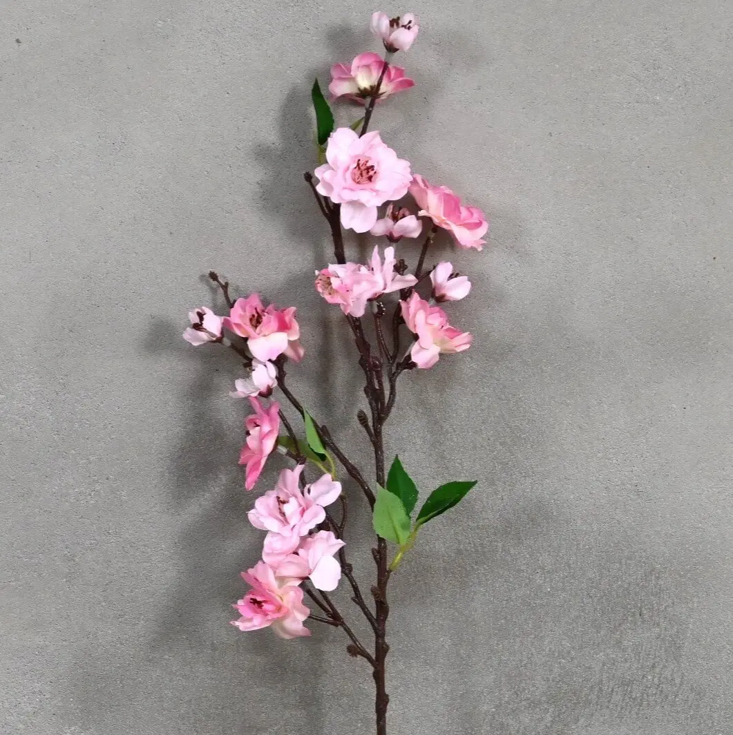 Breng een vleugje lente in huis met deze zijden bloesemtak. De fijn gevormde roze bloemen en natuurlijke vertakkingen geven een realistische uitstraling, terwijl de hoogwaardige zijde ervoor zorgt dat de tak jarenlang mooi blijft.