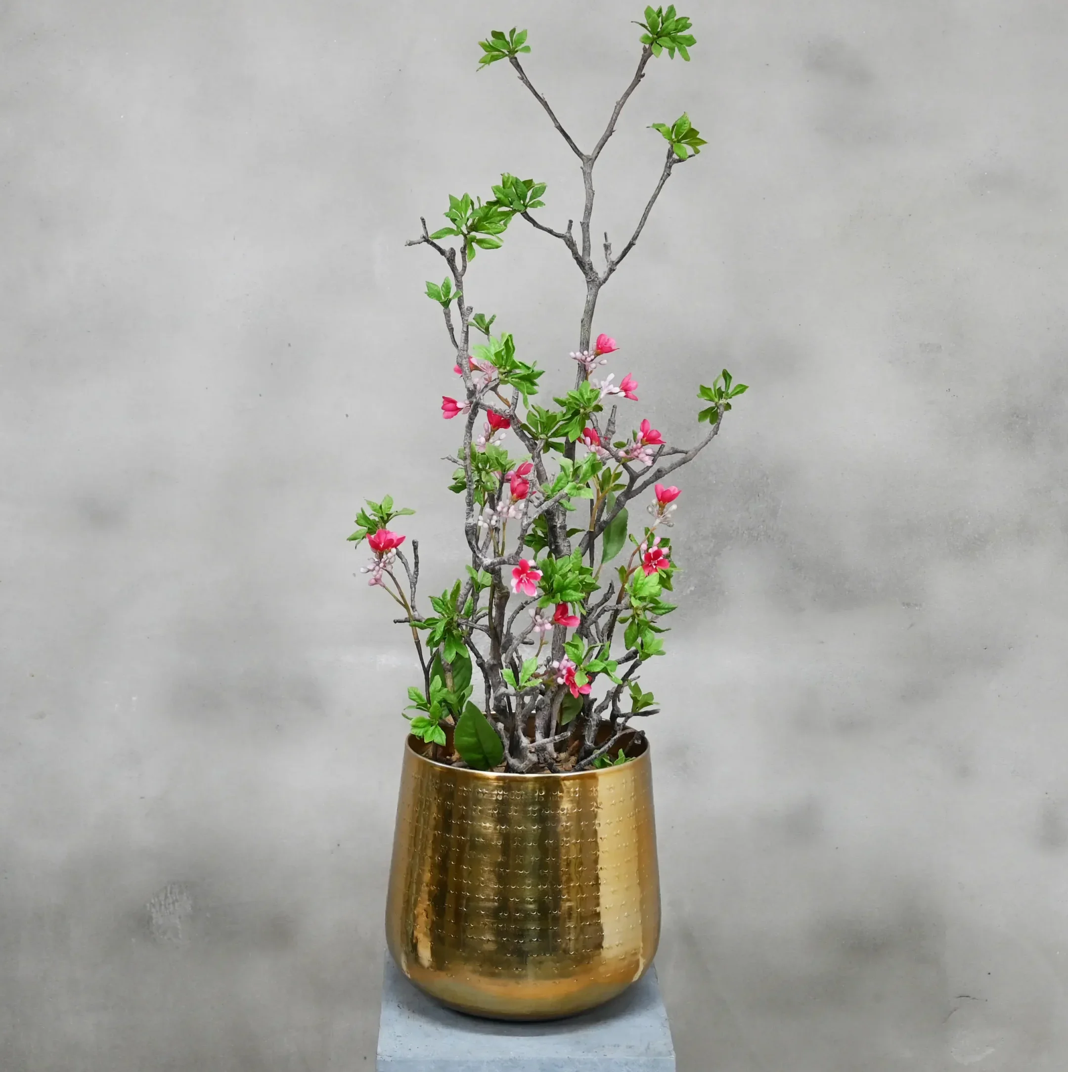 Het bloemstuk wordt standaard geleverd in een binnenpot, maar is ook te bestellen met een divers aanbod aan overpotten waardoor het niet alleen natuurlijk oogt maar ook een chique en moderne toevoeging is aan elk interieur. Dankzij de hoogwaardige kunstmaterialen blijft dit stuk jarenlang mooi, zonder verzorging of water.