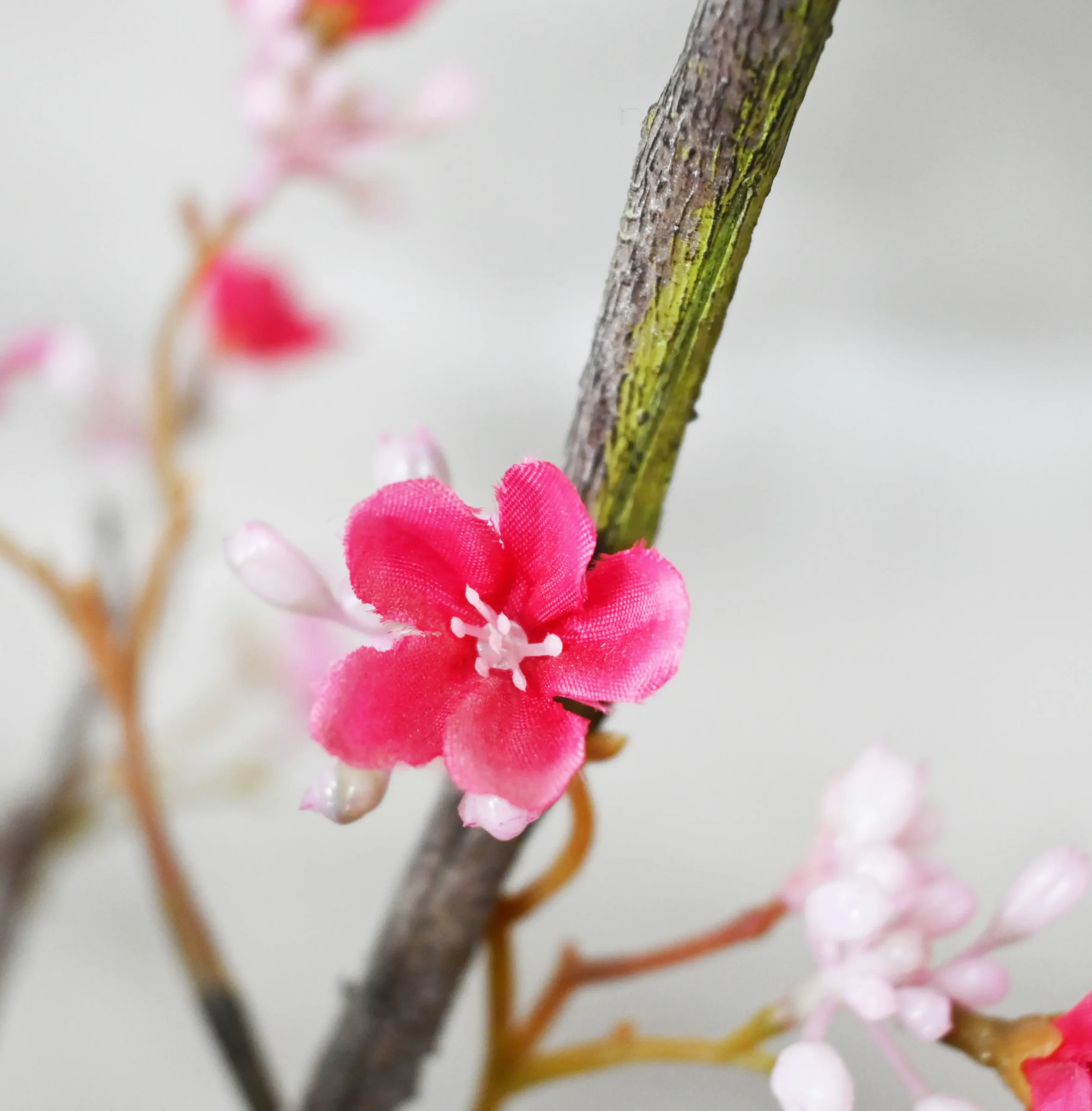 Haal de lente het hele jaar door in huis met dit prachtige kunstbloemstuk Lina. De sierlijke takken met frisgroene bladeren en fijne Felroze bloemetjes geven een natuurlijke en frisse uitstraling die perfect past in zowel een modern als landelijk interieur.