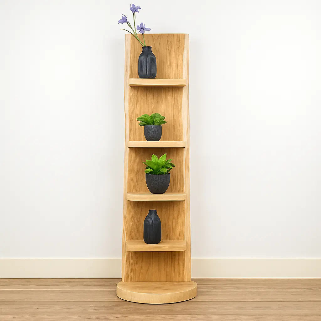 Dankzij het smalle formaat past dit boomstamrek perfect in kleine hoekjes of als subtiele eyecatcher in elk interieur.